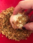 • Take ice cream spheres out of freezer and ⁣⁣place in bowl, firmly patting crumb mixture into the ice cream, until completely coated. ⁣⁣⁣⁣⁣ ⁣⁣⁣⁣